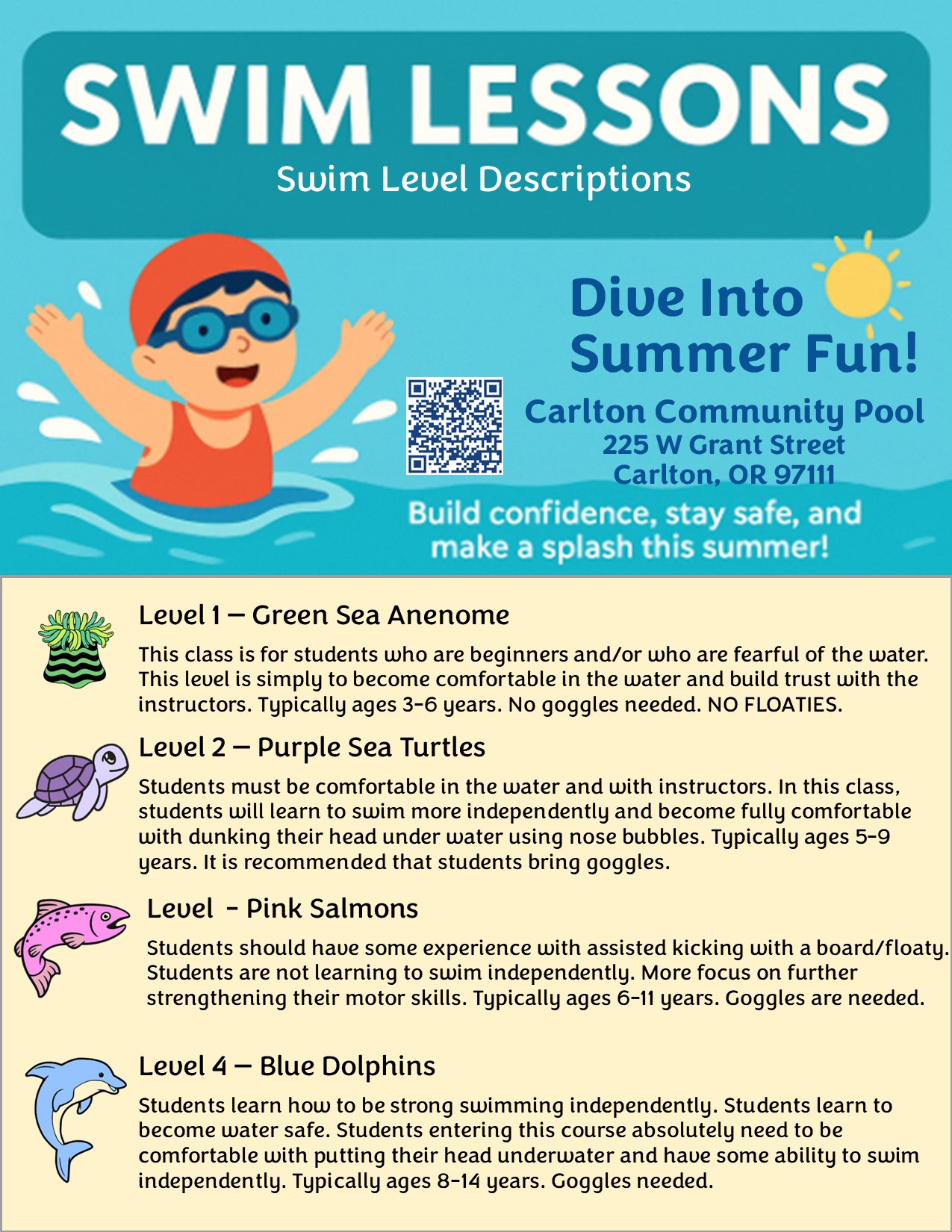 To best determine what swim level your child should be, please follow the class level ability descriptions below: